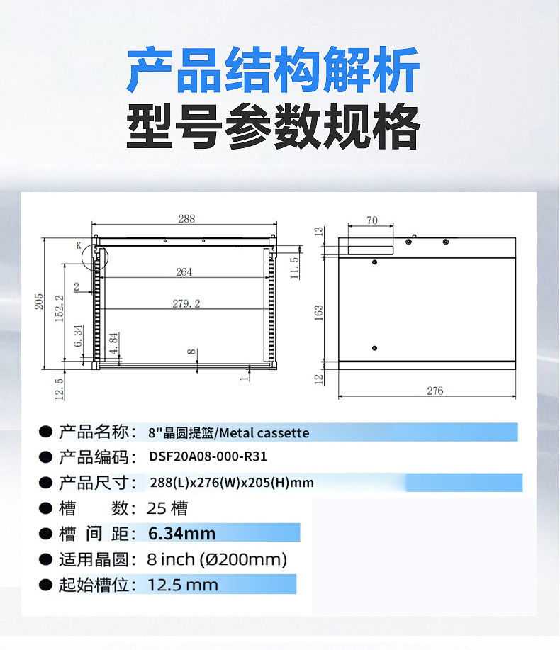 新款減輕設(shè)計(jì)8寸25槽晶圓環(huán)提籃