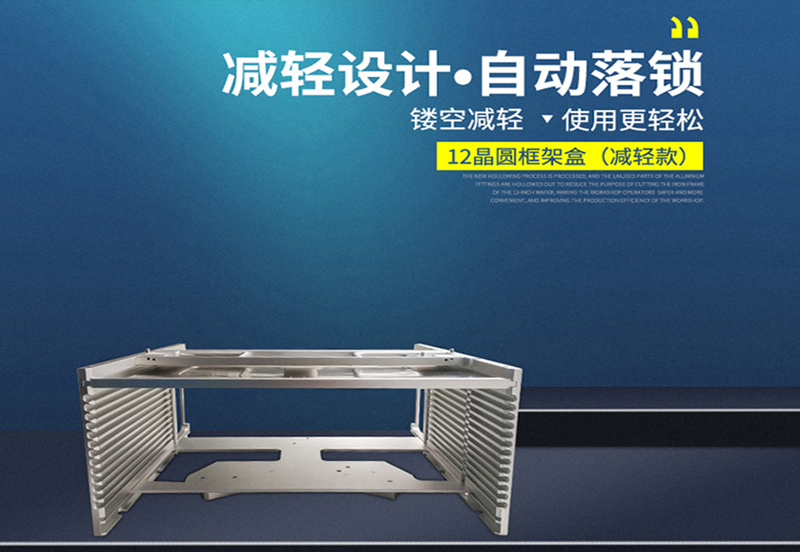 晶圓盒運用于裝載已經貼附完成的晶元芯片,主要應用在晶元研磨,晶元切割,晶元檢查,貼DIE工序,在生產過程中晶圓盒會面臨高溫、高濕的環(huán)境,因此對于料盒的要求比較高。東虹鑫12寸自動落鎖晶圓盒,采用6063鋁型材,表面氧化處理,經久耐用,耐磨耐腐;耐受生產中高溫高濕的環(huán)境,防止因不耐受生產環(huán)境導致晶圓盒的磨損、變形,致使出料不順暢,提高生產效率,降低成本。鏤空減輕設計,重4.5kg,重量減輕30%。CNC加工,平整度≦0.05mm,出料更流暢。不銹鋼檔桿,彈性好,使用壽命可達2年以上;自動落鎖設計,無需再旋轉檔桿保護;配有不銹鋼把手,方便提拿,晶圓劃片切割周轉更方便快捷,提高生產效率。