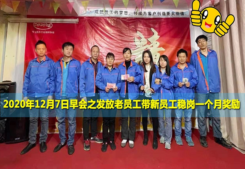 公司的要不斷的往前發(fā)展就離不開新鮮血液的加入到我們的團(tuán)隊(duì)中,剛剛進(jìn)入公司肯定是非常的陌生,無論是在工作,還是在生活中。這時(shí)就需要由老員工帶領(lǐng)新員工,教會(huì)他們工作上的操作流程和一些細(xì)節(jié)問題,讓他們快速熟悉公司生產(chǎn)流程和工藝技術(shù)要求,保證公司產(chǎn)品品質(zhì)的同時(shí)有效提升生產(chǎn)效率。公司也為老員工帶新員工發(fā)放獎(jiǎng)金,感謝他們的努力付出。