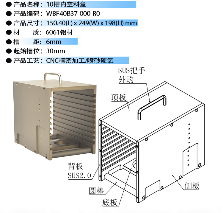 產(chǎn)品簡介: 產(chǎn)品編號:WBF40B37-000-R0;汽車芯片料盒定做廠家東虹鑫擁有十多年的精密加工制造經(jīng)驗累積沉淀1000+款定做各類料盒案例,一站式采購省50%成本。產(chǎn)品工藝技術(shù)成熟穩(wěn)定,精密度高,堅固耐用深受汽車芯片行業(yè)客戶們的親睞并不斷的返單給我們加工。我司率先通過ISO9001質(zhì)量管理體系認證,品質(zhì)交期更有保障。